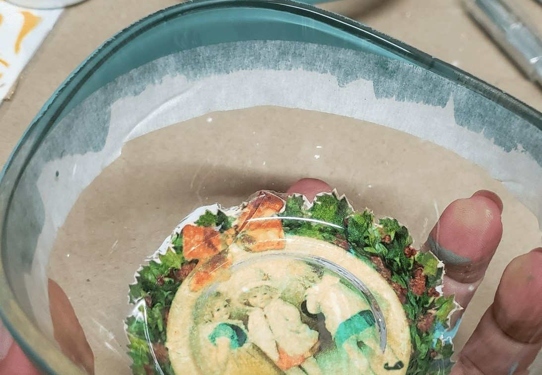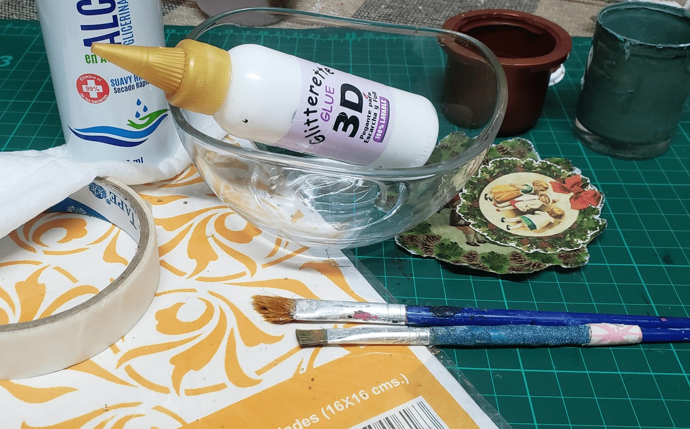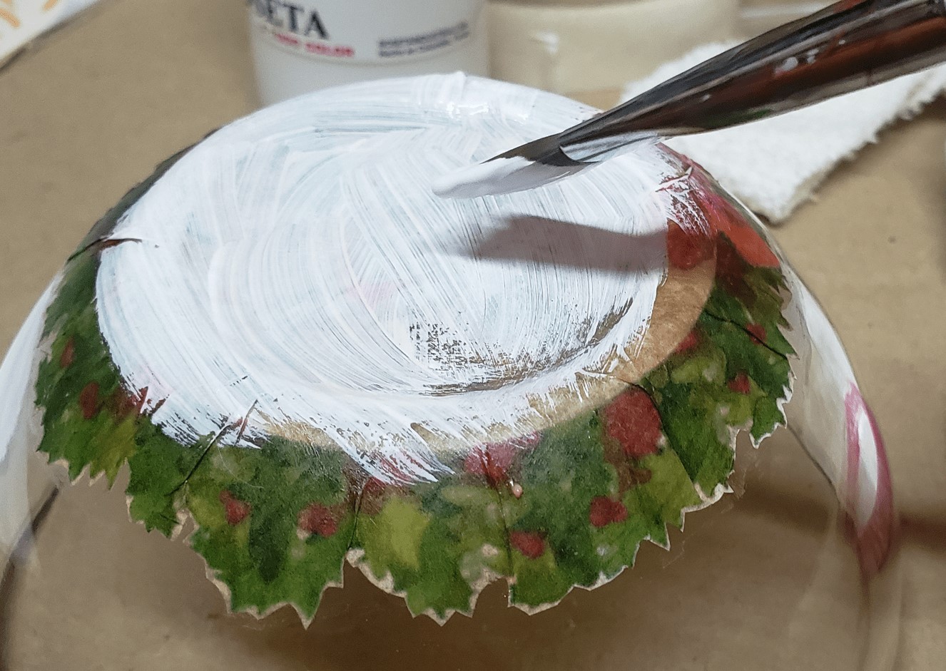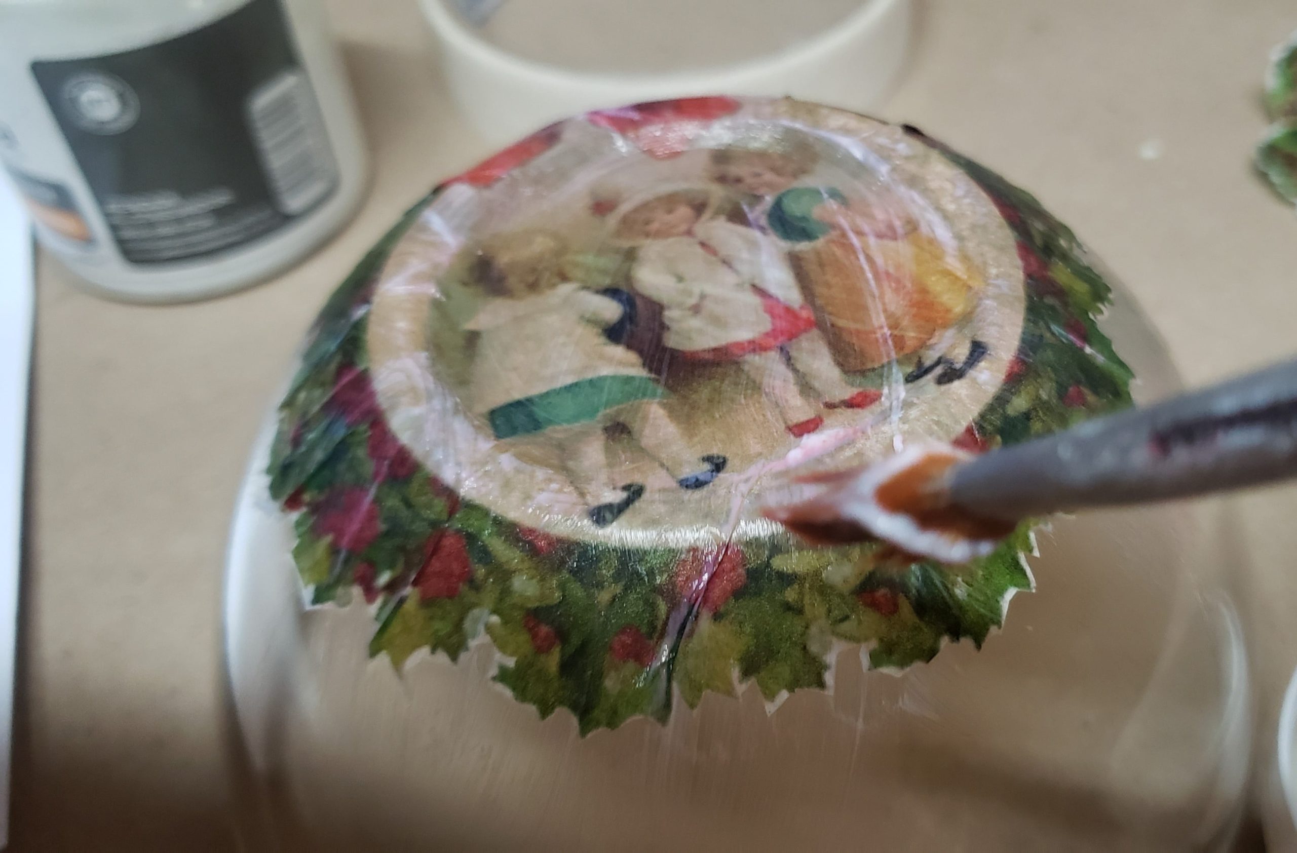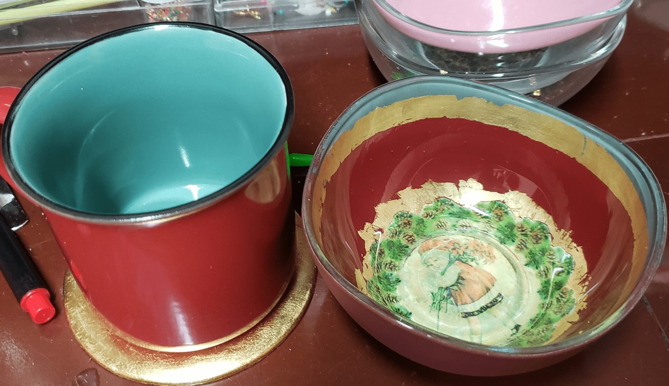 Vajilla navideña vintage, aplicando la técnica decoupage invertido