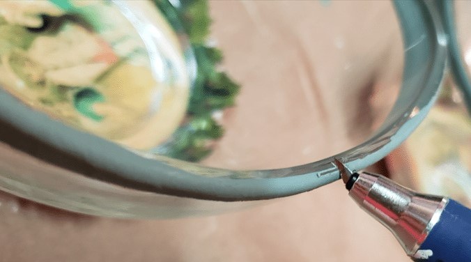 Bandeja de cristal hojillada y pintada .