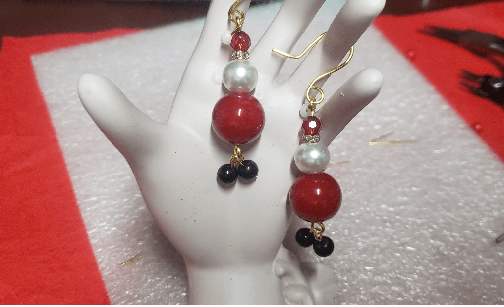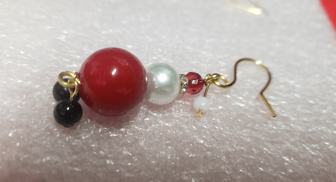 Observa los aretes manzana bordados en piedras con oro golfi, lucen coloridos, bonitos y no tienen mucho peso pues las piedras que usamos son livianas