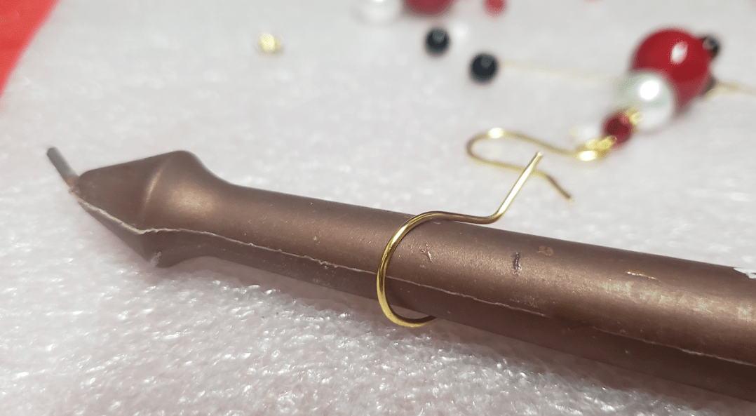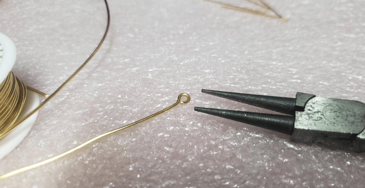 Al terminar la primera fila, debes darle unas tres o cuatro vueltas al alambre sobre el borde del dije, esto para fijarlo muy bien.