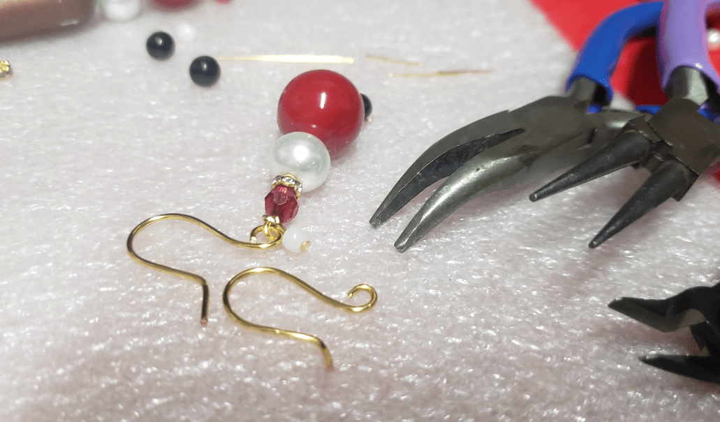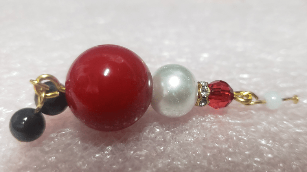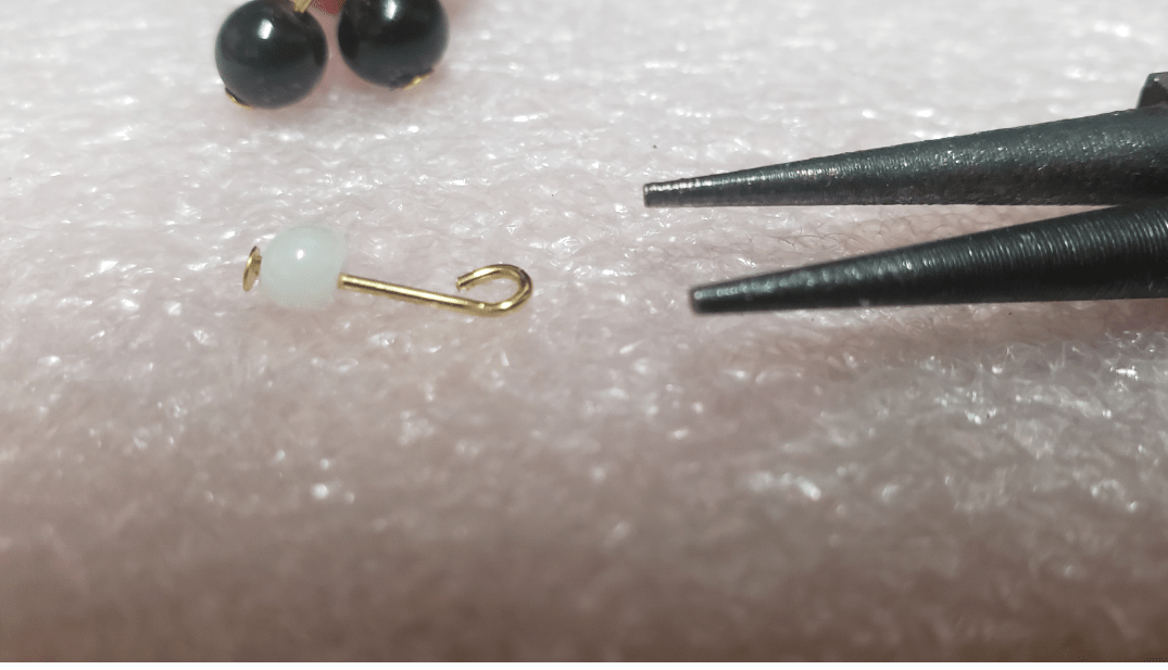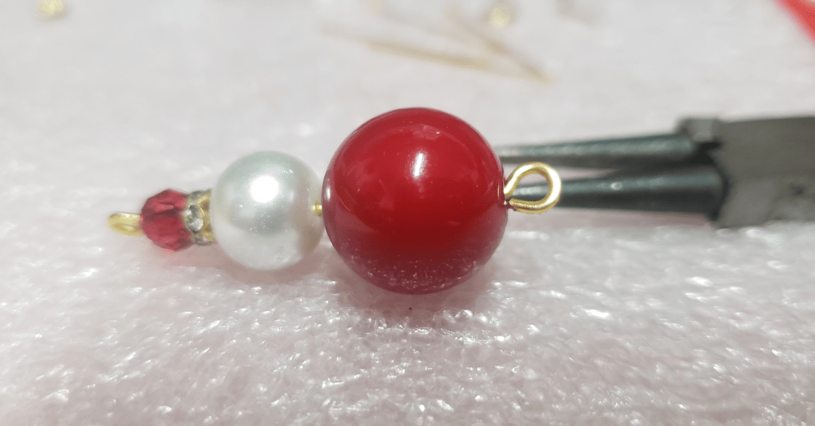 Para armar el arete manzana abres la argolla con dos pinzas, con ella, unes el arete al dije y la cierras con las dos pinzas para que queden bien unidos los extremos de la argolla.