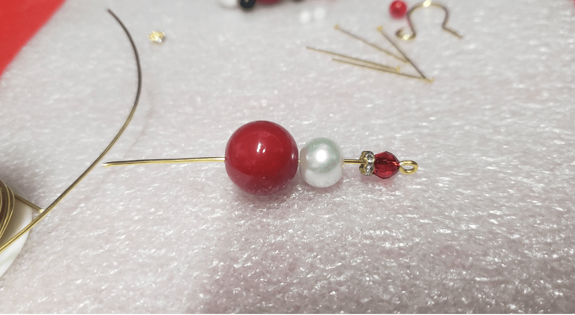 Introduces en el alambre 5 piedras, alternando los colores, como observas en el arete terminado. Así formas las filas hasta llenar toda la manzana.