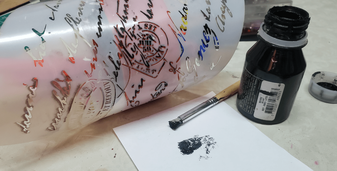 Cuando ya el pegamento esté listo, le colocamos el papel foil y con un trapo le haces presión para que se adherir el color dorado.
