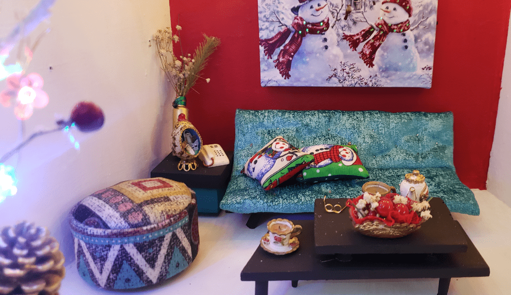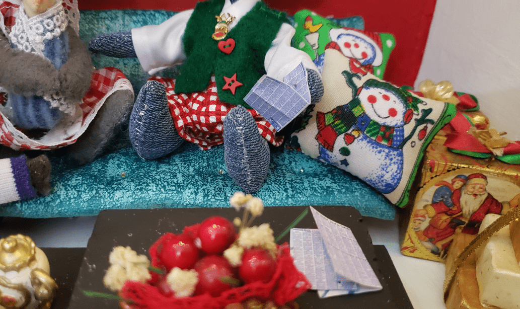 - Telas con motivos y colores navideños.