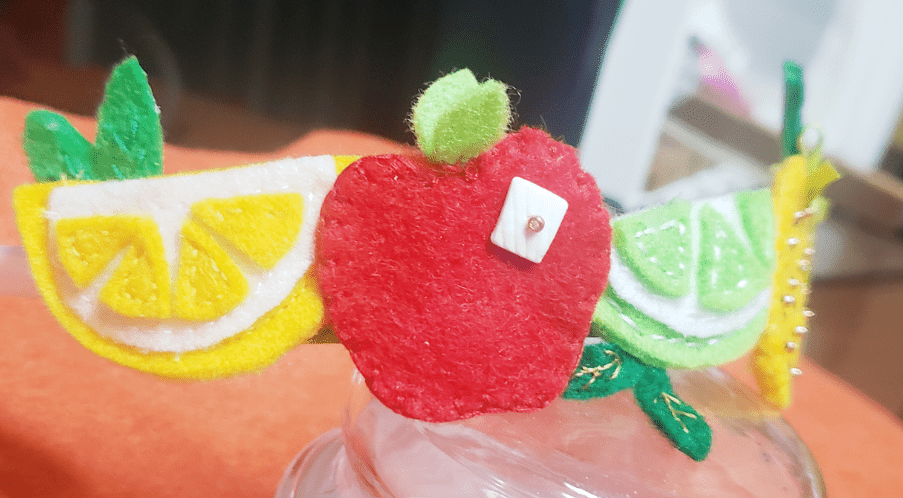 A las hojas le bordas las nervaduras en color de hilo contrastante, para que se noten, las ubicas en el lugar según el diseño que dibujaste.